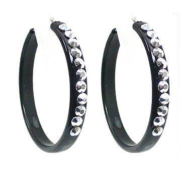 • Light weight plastic hoop earrings, black trim,