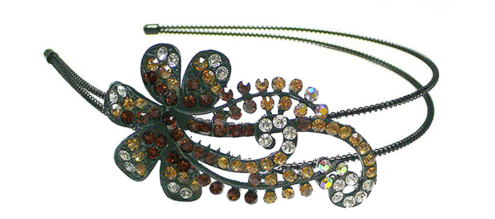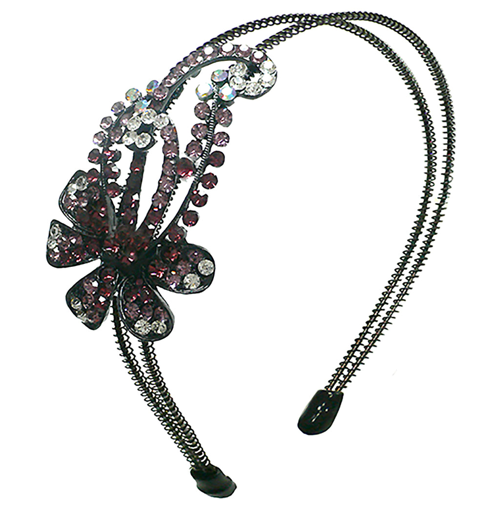 - Crystal flower headband, made of resilient metal wire hairbands with rubber tips.