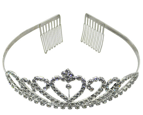 • Crystal Crown Tiara, silver tone with crystal white crytals.