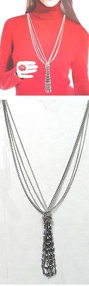 Long Chain Necklace with tassels. Chain is 25" long, tassels are 5.5" long.
