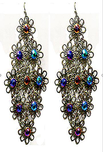 Earring is designed in a diamond shape, measuring 3.5 x 2".