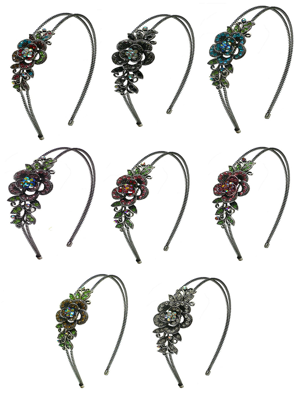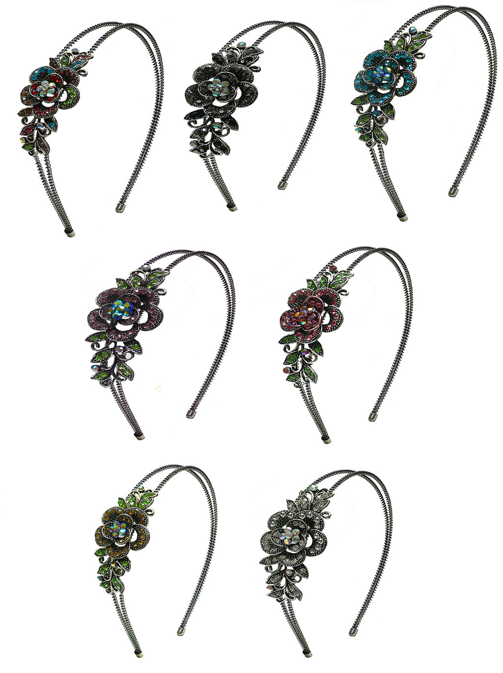 Set of 7 to Set of 9 Crystal Flower Headbands Resilient Metal Wire Hairband Headbands U86121-0119-7to9