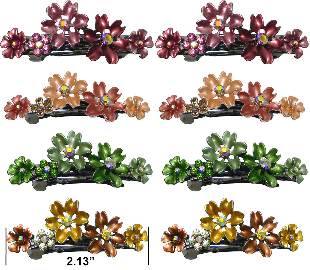 Set of 8 Flower Barrettes Med/Small Hair Clip 2 each 4 Colors, 4 pairs YY86400-12-8